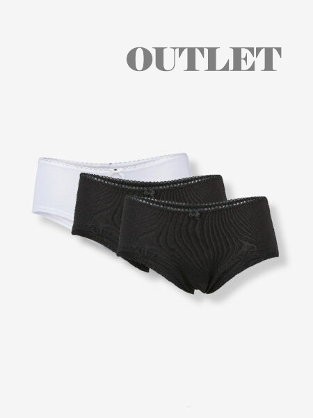 Hipstertrosa i mjuk bomullskvalité med fin spetsdetalj. Fodrad gren och hög livhöjd. 95% bomull, 5% elastan. Tvättas i 60°. Ej torktumling. 3 par/pack. Färg: Svart och vit