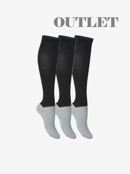 Dessa tunna och smidiga tävlingsstrumpor är en favorit för många ryttare. Skaftet är tillverkat av elastisk polyamidmaterial och foten är av mjuk bomullsblandning. 65% polyamid, 30% bomull, 5% elastan. Tvättas i max 30°, ej torktumling. 3 par/pack. Färg: Svart/grå.