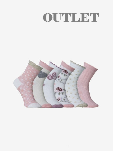 Söt halkstrumpa i mjuka pastellfärger tillverkat av skön bomullskvalitet. 80% kammad bomull, 15% polyamid, 5% elastan. Tvättas i 60°, ej torktumling. 6 par/pack. Färg: Ljusrosa mix.