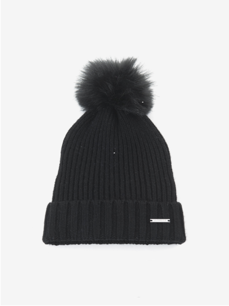 Mjuk och skön ribbstickad mössa med en fluffig pom-pom i fuskspäls. One Size passar både dam och ungdom. 30% long hair nylon, 25% nylon, 25% polyester, 20% viskos. Tvättas i max 30°, ej torktumling. 1 st/pack. Färg: Puderrosa, svart, mörkgrå eller ljusgrå.